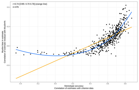 | Stereotype Accuracy | Muslim Bias r | Muslim Preference | Age | Muslims are Treated Well | Admit Only Net Positive Immigrants | Non-Westerns are Net Positive | |