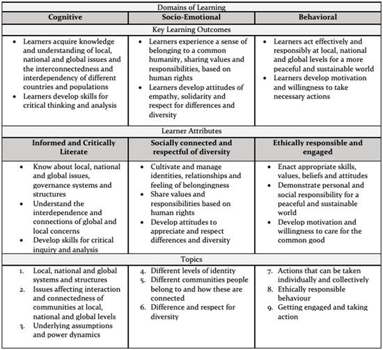 - UNESCO. Global Citizenship Education. Topics and Learning Objectives. UNESCO, 2015. Available online: http://unesdoc.unesco.org/images/0023/002329/232993e.pdf (accessed on 12 June 2020).
