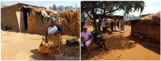 Older female resident in Gunhill informal settlement in urban Harare (left) and informal residents of Gunhill settlement (right) (Source: First Author, 2015).