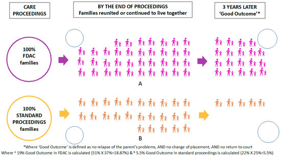 Using ‘survival analysis,’ they estimated that a significantly higher proportion of FDAC than comparison mothers who had been reunited with their children at the end of proceedings would experience a ‘good outcome’ at 3 year follow up (51% vs. 22%).