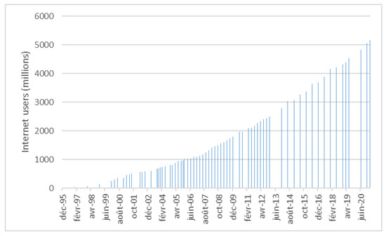 Internet users growth from 1995 to 2020 (according to [49,50]).