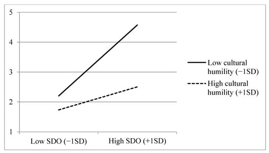Figure 1). Similarly, SDO was associated with more threat for respondents with low cultural humility (−1 SD;