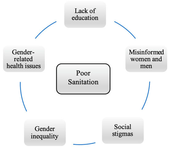 In most cases, women are more affected by the lack of adequate sanitary conditions. The lack of access to proper sanitation is described as an “affliction of the vulnerable and marginalized”, and women, “more often than men”, reap the consequences of inadequate sanitation [18]. As a gendered affliction, sanitation insecurity affects women, like men, regarding hygienic maintenance and methods of defecation; however, women undergo additional obstructions to maintain their hygiene during menstruation. Additionally, India is the world’s most dangerous country for women. This conclusion was made based on three benchmarks: (1) the danger women face in traditional and cultural practices, (2) the risk of sexual violence and harassment, and (3) the danger of domestic servitude, sex slavery, forced labor, and human trafficking [21]. The danger women face is the result of the cultivation of misogyny through the limitation of women’s educational opportunities, perpetuation of limiting gender roles, and misrepresentation of menstruation as a form of weakness that calls for social exclusion. To fully address and understand sanitary insecurity as a gendered issue, its impacts must be contextualized across the rural, urban slum, and inner urban regions of India. Managing menstrual health is a large facet of sanitation insecurity as a whole and requires attention when addressing the issue of inadequate sanitation.