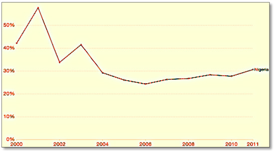 Nigeria’s Government Social Spending between 2000 and 2011 represented as a share of the GDP. Source: Author.