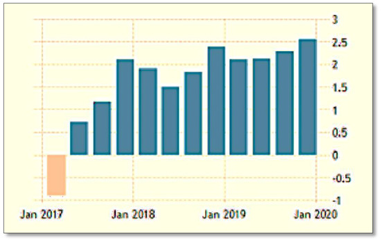 Nigeria's GDP Growth Rate [January 2017 to January 2020]. Source: Trading Economics, 2020.