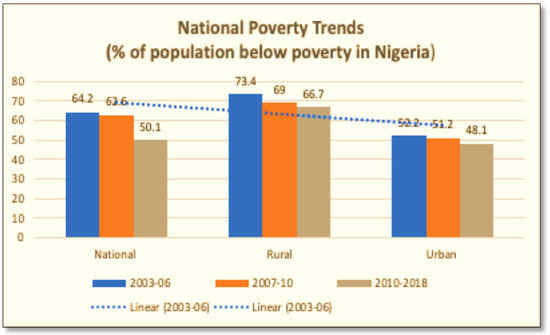 - National Bureau of Statistics [NBS]. Nigeria Poverty Profile 2010; NBS: Abuja, Nigeria, 2014. [Google Scholar]