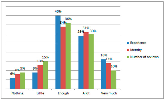 Regarding experience, 49% of respondents claimed “enough” experience in reading online reviews, 24% “a lot,” and 6% “very experienced.” Strong perceptions were held regarding the issue of fake news: 33% considered this a “very serious” problem, 34% “a lot,” and 24% “enough” (the other respondents considered the problem less serious).