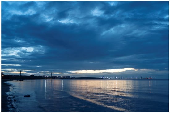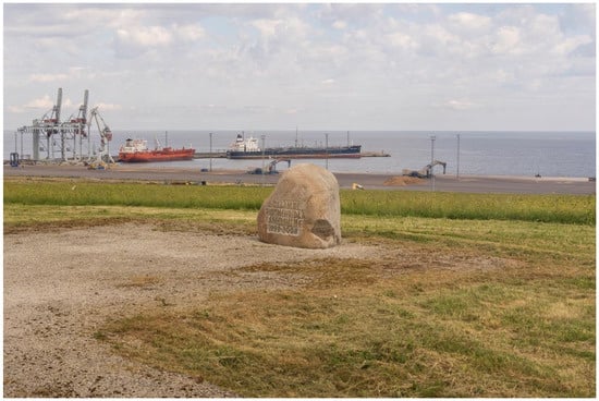 The formation of a heritagescape is guided by three principles: boundaries, cohesion, and visibility [23]. In Sillamäe, two physical boundaries immediately delimit the research field: the geological break lines that have influenced the development of the town, namely the river Sõtke and the Baltic Clint. The river Sõtke in the east is an obvious boundary between the residential and the industrial part of the town; however, this boundary is challenged by another guiding principle: visibility. The newly established seaside promenade in the residential part of the town offers a clear view of the factory’s two operational chimneys and a serene hill covering the tailings pond and stretching far into the Baltic Sea (Figure 3). However, the remediated waste depository is not the first thing a visitor notices. From west to east, another boundary, the Baltic Clint splits the town in two: the upper town and the lower town by the sea. Entering the town from the direction of Narva or Tallinn, the visitor has no other option than to approach the town from its cliff-top side where the highway runs; currently, the port of the town is not open for passenger traffic.