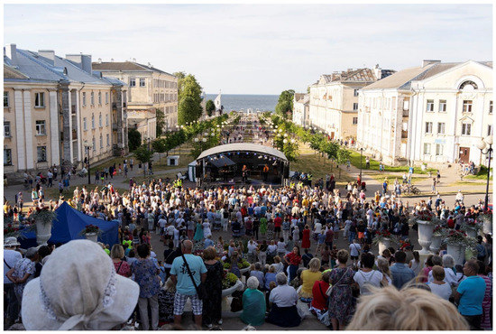 The culture section emphasises the already existing infrastructure of cultural activities. Among others, attention is drawn to activities, development, and modernisation of the Sillamäe Museum, Sillamäe House of Culture, Sillamäe Library, hobby schools, and youth centres. A proposal is made to develop a theme park based on the exhibition of Sillamäe Museum to “preserve and exhibit the town’s culture” (p. 56, [27]); this theme park has already confirmed funding to be received by 2022. In addition, new items should be acquired to the museum’s collection and both the exhibition on the Soviet period and the museum’s activities should be expanded. The activities of the thematic museum on the House of Culture should be broadened. The “development of tourism routes (street signs, opportunities to use the Internet, information boards, parking and leisure areas, observation decks, town decorations (incl. graffiti)), historical objects into tourism products—restoration of sculptures on Mere puiestee and the town park, creation of other works of art and small architectural objects, and emphasising of the sea theme” are listed as a concrete action plan. In addition to the town square, the seaside, and the museum with its surroundings, the area around river Sõtke, and public green spaces are emphasised in this section as important aspects that add to the milieu of the town (pp. 55–58, [27]).