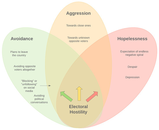 Altogether, one can observe a triptych of gradual and increasingly serious consequences resulting from electoral hostility. These range from four different stages of avoidance to aggression and ultimately hopelessness, all of which can be combined. This triptych is encapsulated in Figure 1.