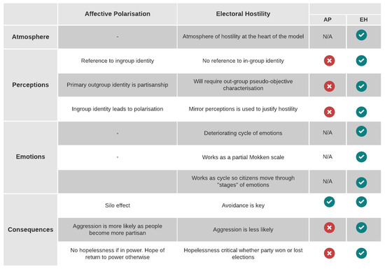 2.1.1. Explaining Overlapping Realities with Two Competing Analytical Models: Affective Polarisation (AP) and Electoral Hostility (EH)