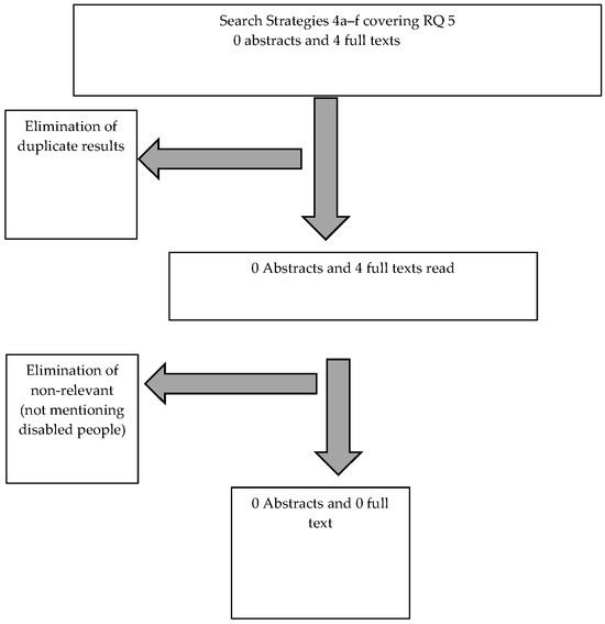 Flow chart of the selection of academic abstracts covering specifically RQ 5, relating to phrases that link allies of disabled people to a specific topic or specific danger for allies, for qualitative analysis.