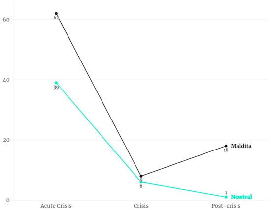 In this regard, we can identify an agenda in which COVID-19 can continue to occupy a leading role (Maldita’s case) or a secondary role (Newtral’s case) in the current stage (R.Q.1.1.). This result contrasts with other analyses obtained in different time periods, as in, for example, one year after the declaration of the state of alarm in Spain, when Newtral surpassed Maldita in verifications related to COVID-19 [].