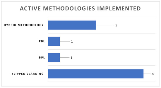 And a third group has analyzed the possible differences between face-to-face and hybrid teaching through the use of active methodologies, to demonstrate whether these methodological strategies facilitate the transition from face-to-face to mixed teaching [11,12,17].