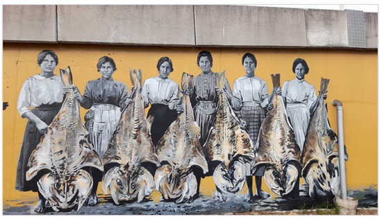 Women and the cod drying process, by urban artist António Conceição, 2020 (Source: author’s own photo, 2022).