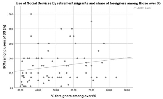 Since there is almost no relationship between the share of elderly foreigners in a municipality and the number of elderly foreigners that make claims to local Social Services, registration does not seem to be solely a strategy to use the Spanish Welfare State.