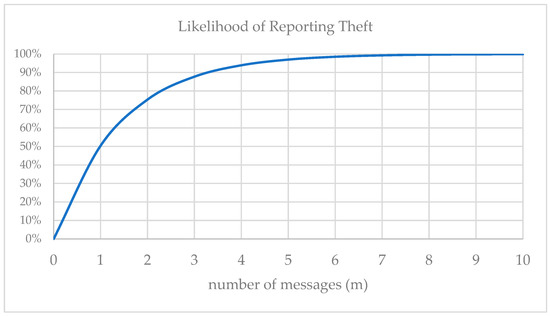The calculation for reporting likelihood is implemented and activated in an unfair job. The reporting functionality is a cascading logic and is based on artifactual evidence. An informed laborer will report if (1) the theft results in the daily pay being less than their daily expenses and (2) the efficacy of the interventions. Laborers’ likelihood of reporting is implemented as a function of educational messages. We have assumed an exponential relationship between the doses of education received and the likelihood of reporting. We have calibrated this curve (see Figure 4) to the results of an experimental manipulation by the authors. This manipulation involved a pre/post-education measurement of familiarity with reporting options. Specifically, the reporting likelihood prior to education is approximately zero and increased to approximately 0.5 in a survey of day laborers [2]. More training means there is a greater chance of reporting.