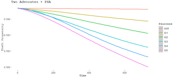 Further, we incorporated the training manipulation examined in the case study as a third category of agent implemented as a type of Bass diffusion model (BDM). Within the BDM approach, we implemented a modality to include the effect of advocates working directly with laborers in the field and a modality associated with a public awareness campaign (PSA). We introduce the BDM and discuss its use in similar systems and our ABM next.