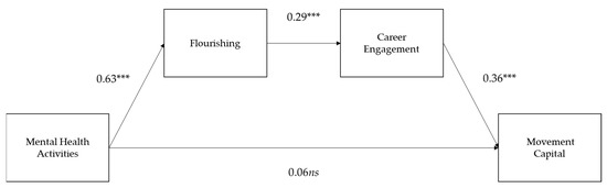 | Mental health activities → flourishing → career engagement → movement capital | 0.07 | 0.02 | 0.02 | 0.11 | ||||||||