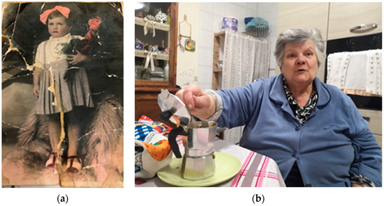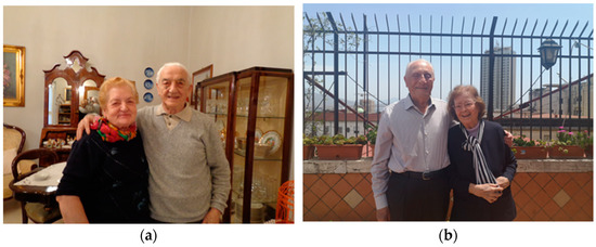 During the fourth phase, the memories of children who took cover in the WWII shelters were collected. Interviews were carried on and recorded on the basis of both structured and unstructured interviews and according to the oral history methodological approach [35,36,37,38]. Data collected during the structured interviews included name, nickname, date of birth, components of the family, pets, address at the time, city area at the time, nature of the shelter (private or public), shelters’ equipment, personal equipment, recovery bag, and parents’ occupation at the time. Data collected during the unstructured interview focused on personal memories, and they have been organized as follows: food, fear, parental protection, collective special events, personal special events, community life, family life, cloth, war bag, personal diary, social and economic issues, and family displacement. During this phase, pictures of witnesses were taken, and old pictures representing them during WWII were reproduced as well. For all the interviewees, participation in the research was a very important occasion; they were all well dressed and very excited. At the beginning, they were very scared, and, above all, they thought they did not remember enough elements that could be useful to the research. After an initial moment of embarrassment, however, each conversation was very lively. On some occasions, the interviews were attended by caregivers, children or grandchildren; however, they were forbidden to interfere with the narration. At the end of the interviews, even the closest relatives of the witnesses reported that they had never had such a detailed account about their memories regarding WWII. All the interviews were fully recorded with a portable recorder. However, since all the visits turned into convivial events—which included sharing coffee, chocolates, homemade cookies or desserts—and the conversation often deviated from the subject of the interview by including the most varied topics, during the transcription, all the elements not related to the purposes of the research were omitted.
