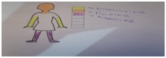 Overall, the study aspires to contribute to relevant research, which is rather limited, and provide insights both for educators into transforming the invisibility of student multilingualism into an obvious advantage for the whole class, especially in Greek state schools where student multilingualism remains invisible ref. [22], and policy makers to include multilingual education refs. [6,7] and culturally sustaining pedagogies ref. [8]. However, considering some of the constraints of the study, such as the rather limited sample, more research is needed, including a larger sample, to generalize and verify the findings of the study. Simultaneously, future studies should explore possible differences in color choice and location on body parts in relation to extra-linguistic (social) variables, such as age, gender, years in Greece, and country of origin, as well as differences depending on whether the languages in each person’s repertoire belonged to the L1 or L2. Additionally, quantitative data would give interesting results in relation to body parts, which could be crossed with the conceptualization of body parts in the languages involved.