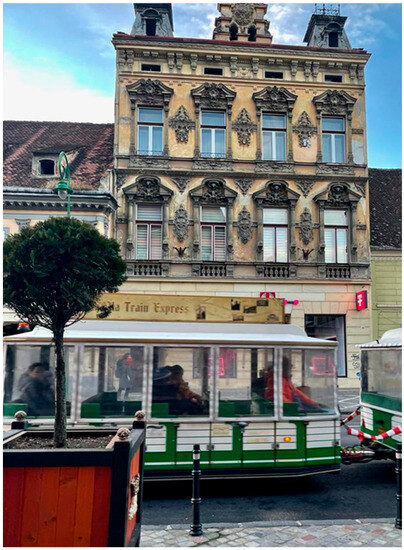 In Transylvanian cities, the Baroque can be observed on and in many buildings. Figure 8 depicts a historic edifice located at the heart of Brasov, boasting Baroque characteristics that are most prominently reflected in its ornate carvings, intricate sculptures, richly decorated moldings, and grand archways. This picture emphasizes how migrants encounter cultural differences between their country of origin and the host country. Experiencing these differences can be both overwhelming and exciting for migrants, as they have to learn how to navigate through new cultures and adapt to a new way of living.