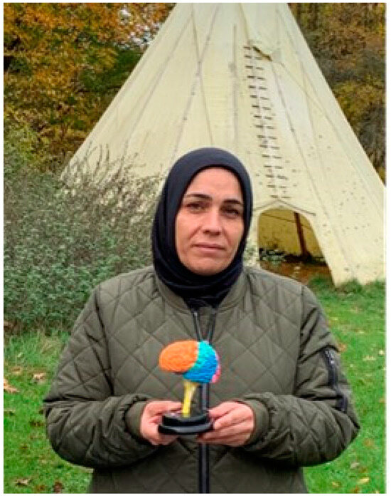 Some of the activities offered to the participants in the intervention were light yoga exercises, breathing exercises, and practical knowledge about edible berries and herbs available in the Danish countryside. These activities took place in the forest at two different places near the small town where the women lived, and transportation to the spot was provided for the participants. The activities were received with positive responses. The women said they could feel the benefits of doing a little yoga for their sore muscles, and the breathing exercises calmed mental or cognitive distress. They also seemed to expect information and advice in top-down formats more familiar to them from previous experiences, as they asked for advice from a dietary expert. Then, we invited a dietary expert who came to present a lecture about type 2 diabetes in the nature. After a few meetings the women sensed the informal PAR-ideals of the project and our invitations to participate more actively, also in the organization of the meetings. Then, they asked for more yoga, more knowledge about edible herbs, and they brought more foods, because they enjoyed our social connectedness. The trust which was built even encouraged one of the Turkish women to present her own experiences with weight loss when guided by a cognitive therapist. She, therefore, requested a model of a brain for her presentation about how to “trick” the brain to lose weight. (See illustration, Figure 1).
