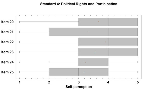 To meet the study’s objectives, a questionnaire was developed consisting of a demographic data section and six dimensions (refer to Table 1), resulting in 30 items. These items correspond to each of the standards established by the IACHR to practice the right to self-determination. They are presented using a “Likert type” scale, with a skills measurement level, where 1 corresponds to “Totally Disagree”; 2 “Disagree”; 3 “Neither Agree nor Disagree”; 4 “Agree”; and 5 “Totally Agree”.