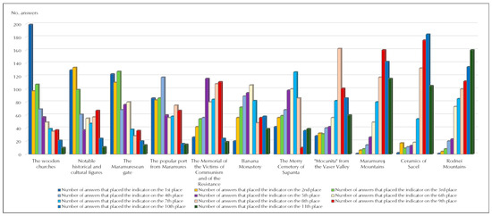 In addition, respondents’ gender and educational level do not seem to have a significant impact, as responses have a rather uniform spread. It is worth noting though that a large proportion of respondents who rank these outstanding historical and cultural individuals in the last two places belong to ethnic minority groups; this may explain the lower importance they attribute to this identity element. However, regardless of these prominent personalities’ position in the hierarchy, it is the duty of the region’s inhabitants and administrative authorities to ensure that their memory is not forgotten and that the elements associated with them (memorial houses, heritage items, folk costumes, folk songs, etc.) are preserved and promoted as such. We propose their inclusion in a thematic tourist circuit, which we consider of paramount importance for the Land of Maramureș.