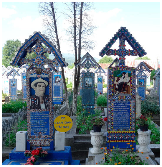 Based on the content they convey, the aforementioned works can be classified into two distinct categories: (1) works from the field of regional geography, with a general and synthetic character, which address a diverse range of aspects relevant to the Land of Maramureș (e.g., [43,48,52]) and (2) works focused on specific elements (e.g., the Maramureș gate; wooden sculptures; wooden churches; mountain morphology; regional tourism; the narrow-gauge railway and its specific carriages and steam locomotives; folk costumes; pottery; communism and the destruction of cultural and political elites; or the uniqueness of a famous cemetery), in which the level of analysis and detail are substantial (e.g., [49,55,56,57]). All these works were instrumental to our endeavour, as they provided us with relevant information about the identity load of the Land of Maramureș and the importance of each element at local, regional, national and international levels.