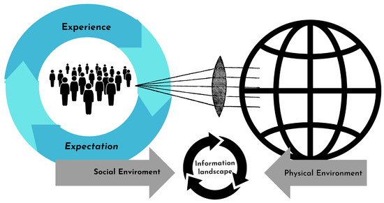 Our engagement with the environment is always mediated by the interplay between patterns of experience and expectations (see Figure 2). With the physical environment, this mediation stems from the meaningful categorization of individual sensory events. For the social environment, it arises from the collective assimilation and reconciliation of meaning with these categories. Consequently, the information landscape is necessarily conditioned on the socially mediated constraints and limitations inherent to the collective mental representations of the environment.
