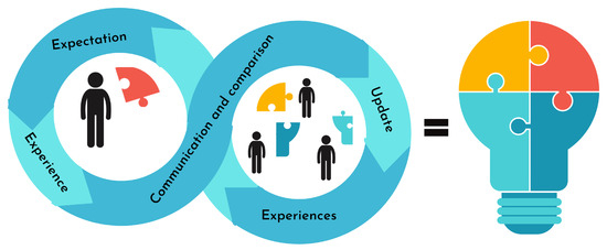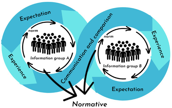 Given the natural variations in individual experiences and abilities (e.g., [172]) and the diversity of contexts [173,174,175,176], each assessment of these norms yields distinct evaluations and expectations based on the provisional information. Individual evaluations are then transmitted back through the same social network, reintegrating updated information and contributing to the adaptive refinement of collective norms. Successes and failures as well as the specific environmental conditions and situational contexts all serve to refine the current information exchanged. This cyclical and recursive process of evaluation, assimilation, and retransmission of information functions as an evolutionary search to identify an optimal set of potential solutions within complex and dynamic environments.