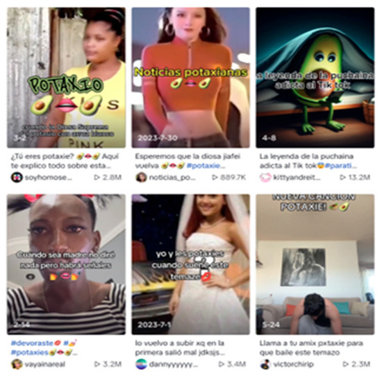 Our focused analysis of the 200 videos highlights the Potaxie subculture’s prevalence, with an average of 70,000 “likes” per video. This popularity underscores Potaxie’s influence among Spanish-speaking users, indicating a growing subcultural movement. Qualitative analysis complements these quantitative insights by exploring the unique aesthetics, identity construction, and social norms within Potaxie. This transition to qualitative analysis deepens the narrative, showcasing how Potaxie content both aligns with and challenges established societal expectations.