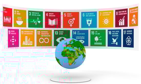 Human sustainability: We envision a more balanced and progressive society in which mutual respect is practised by citizens and passed on to future generations, enabling people to lead active and rewarding lives [33], linking science, technology, and innovation around “human sustainability”. A keyword associated with Society 5.0 is sustainability. Society will prioritise a holistic approach that balances the environment, society, and economy in equal proportions to achieve the United Nations Development Programme’s 2030 goals (UN SDGs, see Figure 5), such as poverty eradication, environmental concerns, and peace and prosperity [29,34,35]. Furthermore, Shchelkunov and Karimov [36] state that the establishment of Society 5.0 is related to transhuman evolution, which aims to dispose of the physical basis of being an individual by artificial means.