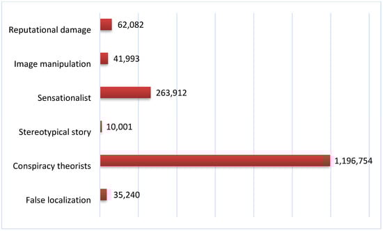 Regarding the category of disinformation, we established eight assumptions: false tracing, conspiracy-mongering, stereotyped stories, sensational–emotional, image manipulation, reputational damage, fraud, and others.