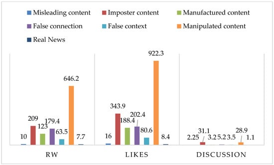Engagement and discussion achieved by tweets based on the type of information disorder.