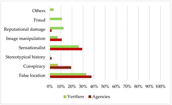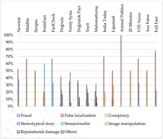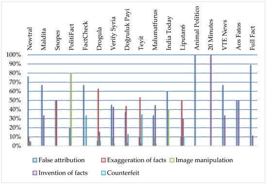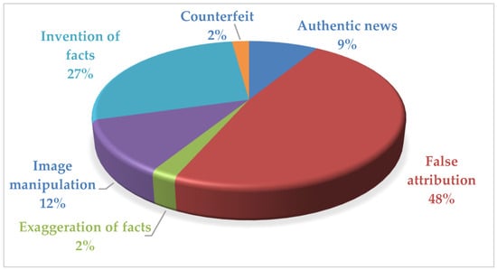 In order to identify the disinformation strategy present in such information, we followed the categorizations of Aparici, García Marín, and Rincón Manzano [98]: false attribution, exaggeration of facts, manipulation of images, invention of facts, and impersonation.