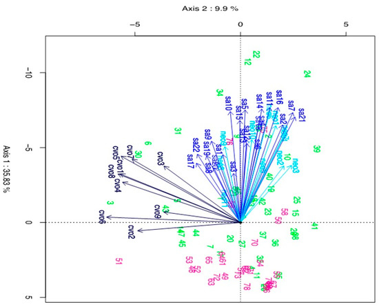 3.4. The HJ-Biplot Analysis