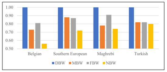 These differences point toward a higher likelihood of gendered specialization in paid and unpaid work among Maghrebi and Turkish origin groups in Belgium, particularly among couples involving a female first-generation migrant. Previous research by Huschek, de Valk, and Liefbroer [16] in Germany, Austria, France, the Netherlands, Switzerland, and Sweden finds that second-generation Turks with a native partner have the most gender-egalitarian division of work. Couples consisting of a second-generation Turkish man and a first-generation Turkish woman have the most gendered division of work.