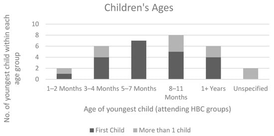 Happy Baby Community and Hestia supported the participant recruitment by inviting relevant language speakers to attend groups, which reduced the need to share personal information with the research team, but also due to the existing trusted relationship and regular points of communication with the mothers. They approached 88 mothers across selected language groups using a convenience sampling approach, all of whom had given birth in the previous year (2021–2022, See Figure 2 for ages). Where interest exceeded spaces available, mothers joined based on availability on the given date.