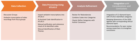 The results will ascertain whether the 2030 Agenda espouses a reformist outlook on human development or presents an opportunity to advance nonhegemonic development and human rights through a critical lens of the current paradigm. The critical paradigm was born from the Frankfurt School as the original source of Critical Theory, a social and political philosophical movement that criticizes modernity, capitalism, and social emancipation [6]. The theories of the Frankfurt School have had a profound impact on both the academic and cultural spheres and continue to influence critical organizational research and socio-political theory [7]. Five discussion groups were held to answer the research question; twenty-five academics from different research centers and international universities participated. Moreover, this study explores the implications of intellectual capital and social sciences for the 2030 Agenda. This analysis focuses on three key elements: (1) the importance of the intellectual capital of research centers and universities in improving the debate critical of the SDGs and their relationship with human rights; (2) the development of a scientific debate between the theories critical of the 2030 Agenda, which places greater emphasis on debating development itself rather than the agenda itself in a framework of human rights; and (3) development, human rights, and territories, which are central axes of the 2030 Agenda; these are framed in a specific methodology, such as the ethical diamond of Joaquín Herrera Flores. The tool used for the subsequent analysis is discourse analysis; this tool, which can be understood as criticism, incorporates social critique into its own formation of discourse, offering perspectives on research objects, subject formations, and contexts of academic production [8]. The present study has a transfer vocation as it is conducted with a relational engagement approach to the research impact, i.e., with the cocreation of epistemically critical academic stakeholders, complementing the traditional bibliometric measures, to maximize the social impact by using the present study in spaces of social discussion on sustainable development [9].
