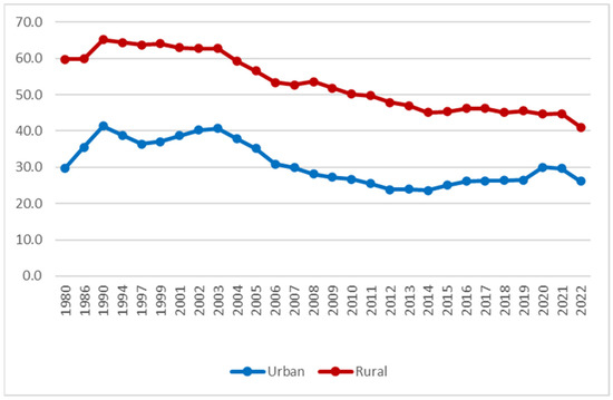 Since the 1970s, more than half of Latin America’s population resides in urban areas. With urban populations growing more than rural ones, by 2030, it is projected that 84% of the region’s populace will be urban dwellers [8]. Despite the declining rural population share, poverty in rural areas remains a chronic challenge, with approximately half of the rural population classified as poor or extremely poor—a prevalence significantly higher than in urban areas [36].