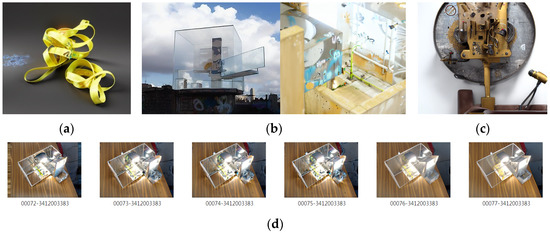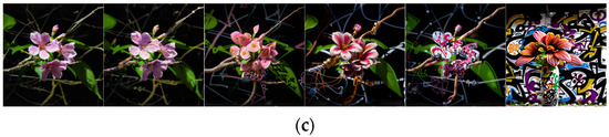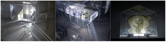 Most of the figures were generative images purposely selected from sets of tests. The images were used as iconic notes with PNG information accessible. However, each image was unique, and the inherited tension may not be fully duplicated. An example can be found in “4.5. Illuminated and abstract contexts”: the abstract form originated from Mondrian. Similar compositions or seeds can be applied to match the original composition but end up within totally different contexts.