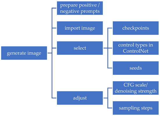 Figure 3) was divided into three parts: (1) one image was processed through most of the CFG and denoising combinations; (2) one image was processed through all of the checkpoints; and (3) a satisfactory seed was applied to different images to generalize the obtained results. Both graffiti and murals were used under different weight distributions, from 1.2 to 1.7, to mimic a realistic combination.