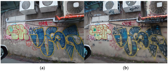 Figure 17b). More rich details appeared in a close-up observation. Due to an incorrectly enlarged scale, the ground had extra graffiti at a general reachable height.