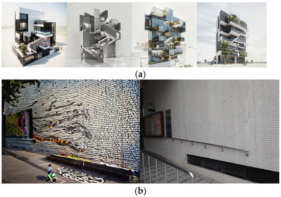 Three types of results were obtained: (1) txt2img and img2img attempts at graffiti generation; (2) image transfer from scaled prototype models; and (3) context transfer from original and representative images. The number of tests, each subjected to various building or urban fabric situations, reached 50 for the prototype design scenes; the graffiti with murals; the same 3D models but in different scenes or orientations; and a loop of the initial, developing, fully occupied, and cover-up stages.