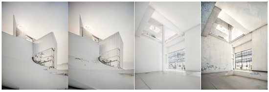 Figure 12). It included a rich composition of fabric on the second skin: a planar wall, extruded HVAC utilities, linear pipes, occupied graffiti areas, and small, unoccupied wall regions. There were a number of areas of overlapped graffiti on the two large areas, behind structures under a cooling fan, on a window cover, or over small plastic tubes, that created a gradually evolving second skin and graffiti under mutual influence. It showed an intensified development of the graffiti and murals at the final stage that not only occupied further surface areas but also redefined the already painted areas with new graphic characters and styles. Moreover, the edges of the bubble graffiti remained unique, similar to the style created in the peripheral areas.