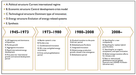 2. Background: Periodization of the Development Phases of the Global System after World War II and the Coevolution of the Global Energy System