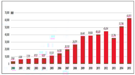- Global Wind Energy Council. Global Wind Statistics 2015; Global Wind Energy Council: Brussels, Belgium, 2016. [Google Scholar]