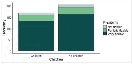 Distribution of responses if the individual has or no has children with stacked bars according to perceived flexibility.